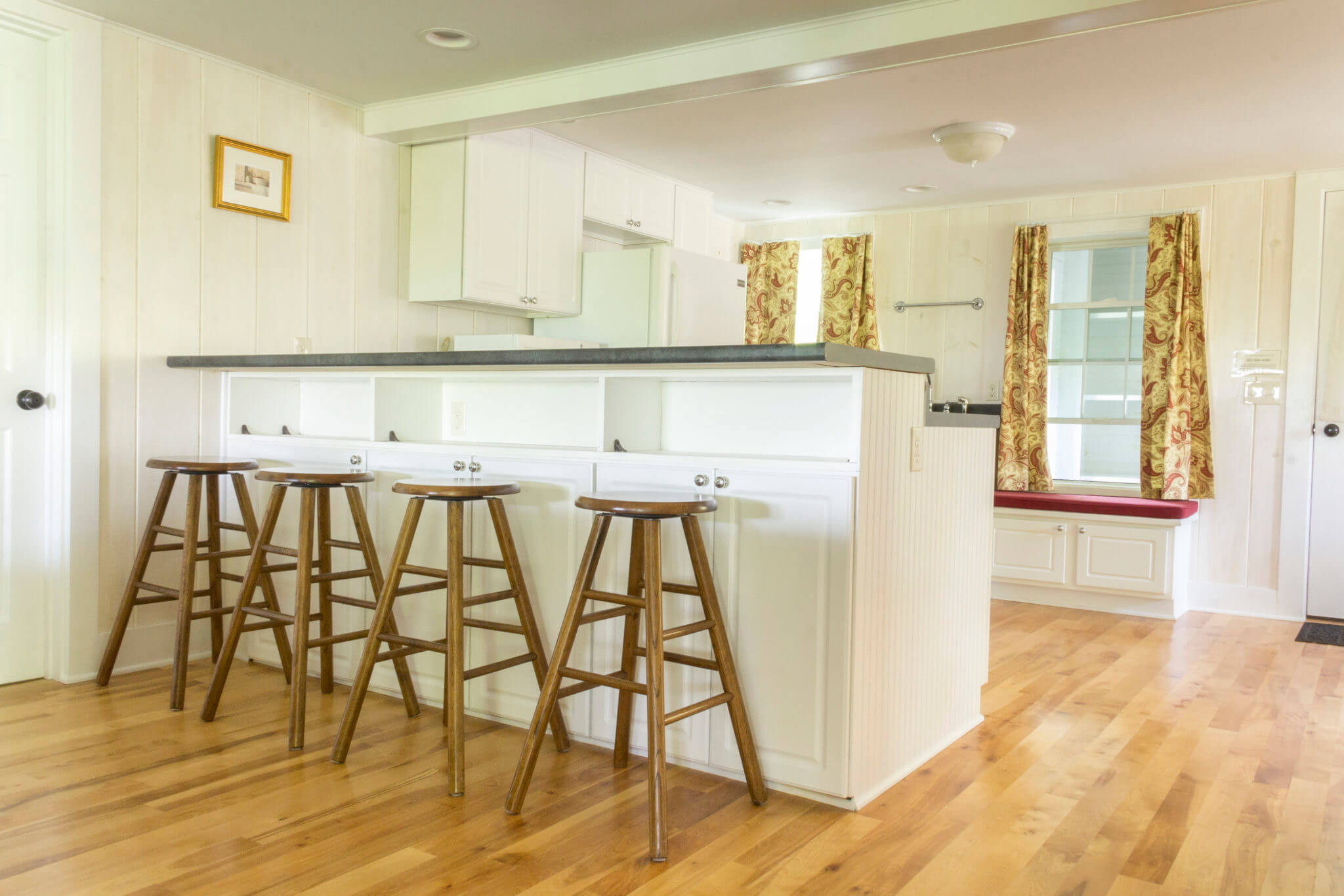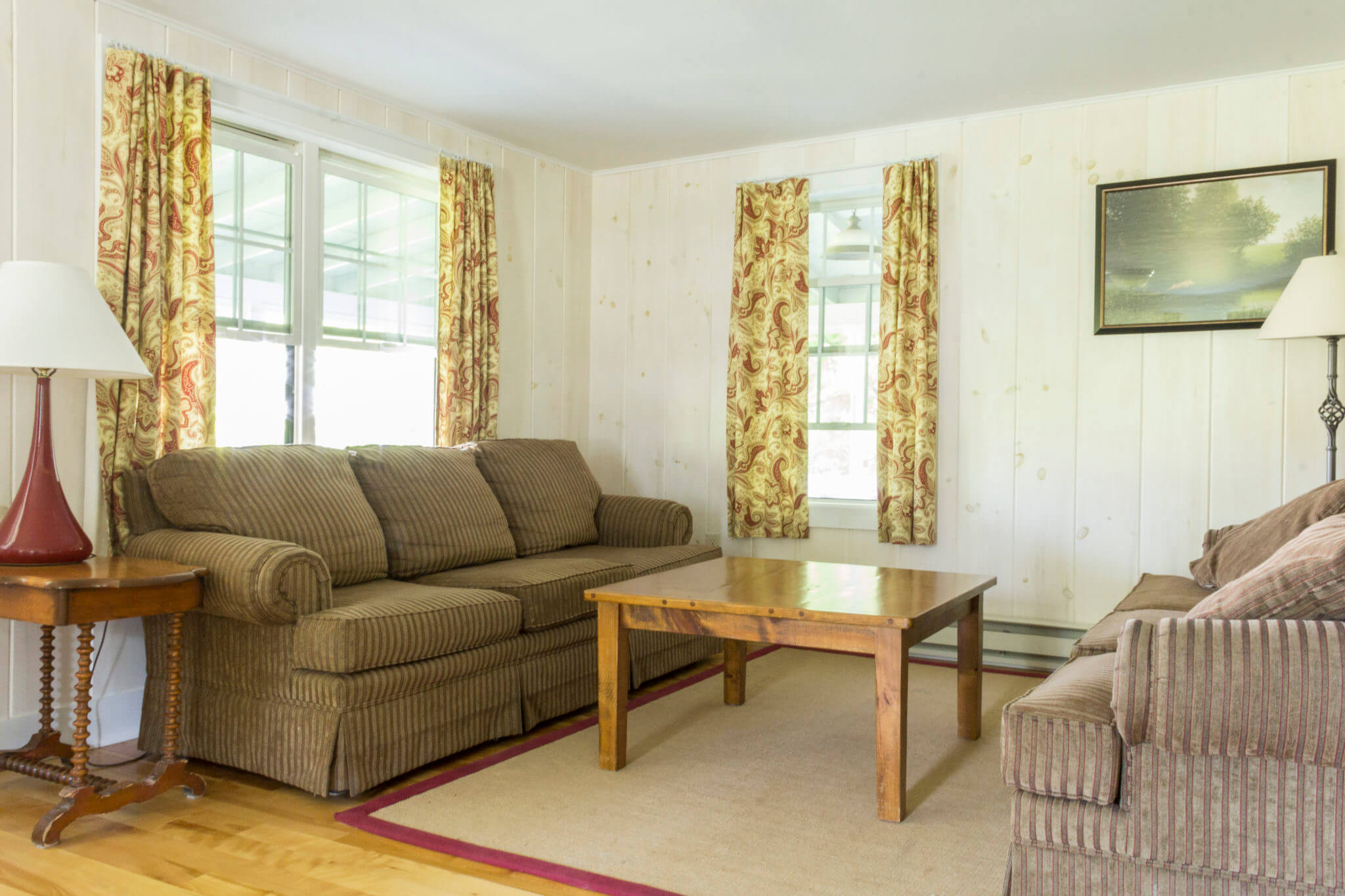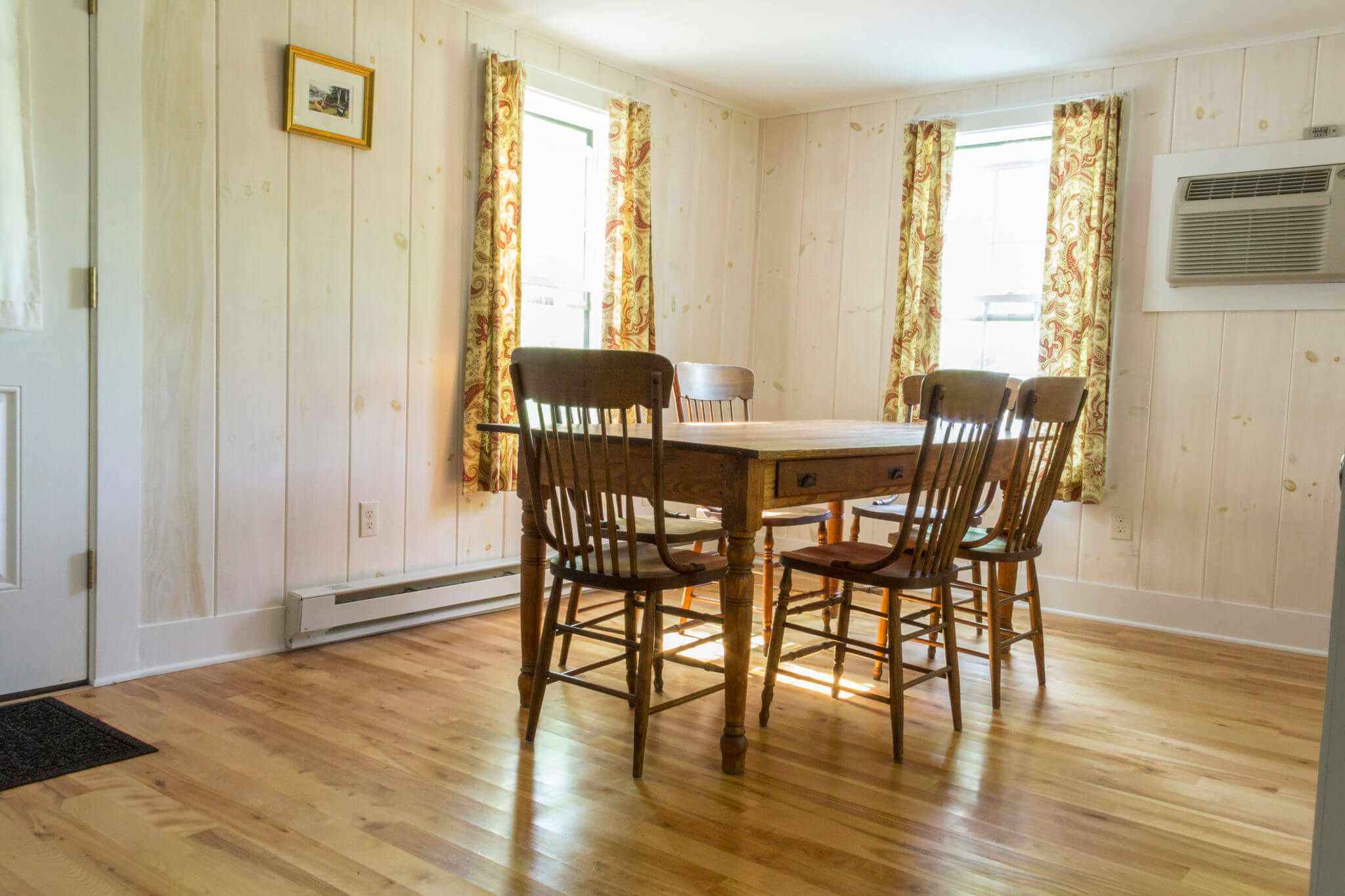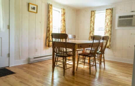 Accommodating 5 – 9 guests, Rockridge is located at about a 15-20 minute walk to the Inn and activities or a quicker bike ride. The cottage is situated near the Tyler family camps as well as other private summer cottages. It is a 2-story, four-bedroom, 2-bath cottage with a washer & dryer. The first floor has a living room, kitchenette, full bath with a tub and large screened porch with a view of the lake. The second floor has a bedroom with a king bed and a/c; a bedroom with a queen and a/c; a bedroom with bunks and a/c; a bedroom with two twins and a/c; and a full bath with a shower stall but no tub. Ideal for a large family or two smaller families.