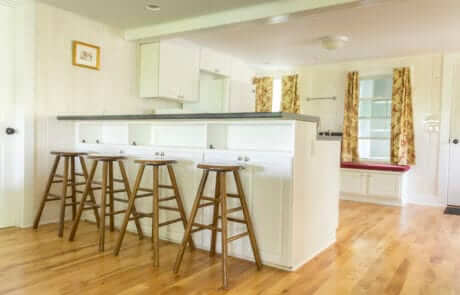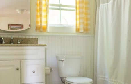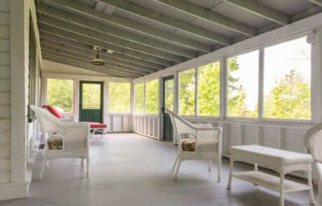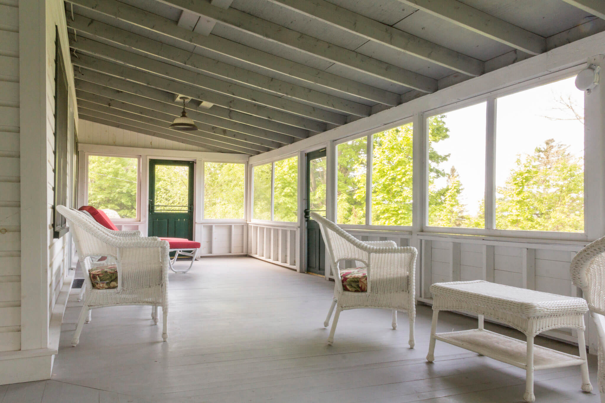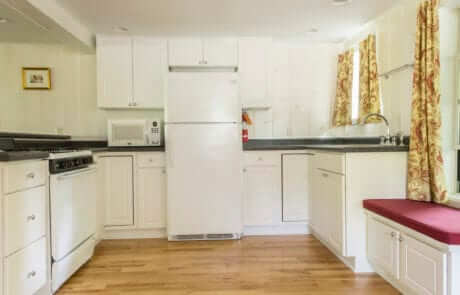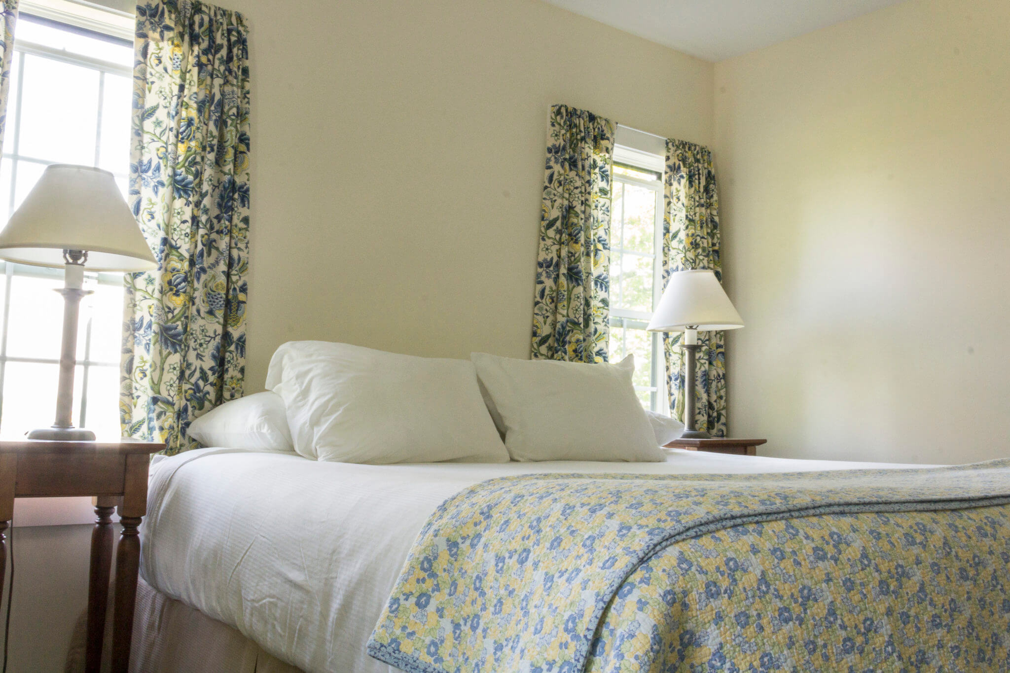Accommodating 5 – 9 guests, Rockridge is located at about a 15-20 minute walk to the Inn and activities or a quicker bike ride. The cottage is situated near the Tyler family camps as well as other private summer cottages. It is a 2-story, four-bedroom, 2-bath cottage with a washer & dryer. The first floor has a living room, kitchenette, full bath with a tub and large screened porch with a view of the lake. The second floor has a bedroom with a king bed and a/c; a bedroom with a queen and a/c; a bedroom with bunks and a/c; a bedroom with two twins and a/c; and a full bath with a shower stall but no tub. Ideal for a large family or two smaller families.